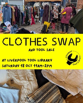 Drop off a maximum of 1 bag of clothes in good condition to the Tool Library on either Saturday 11th (10am-1pm) or Wednesday 15th (4-7pm)
